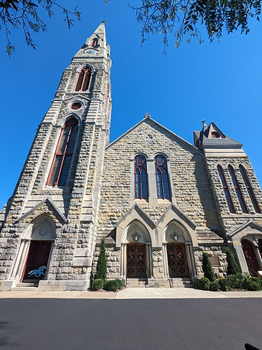 Our current sanctuary, completed in 1871, remains the tallest structure in Orange County. Built from local blue limestone, it features a 4,000-pound bell inscribed "Holiness Unto the Lord" and two signed Tiffany windows depicting the Resurrection and the Road to Emmaus.